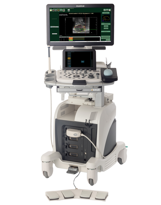 超音波を用いて、体の表面から胸・腹部の臓器を観察する装置です。