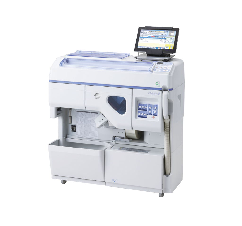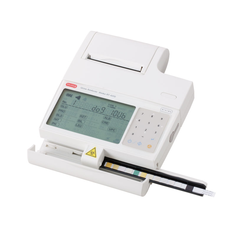 尿に含まれるタンパクや糖分などを機械で測定できる装置です。試験紙で行う方法に比べ、正確性が向上しています。
