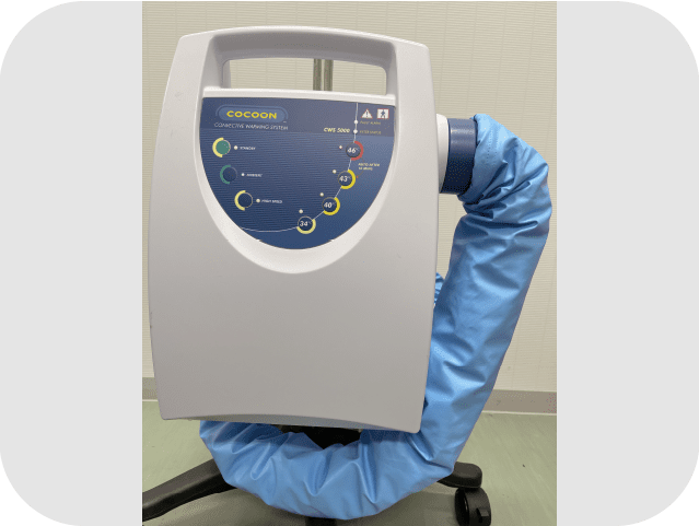 手術時の患者の体温を維持するために使用される温風式加温システムです。室温から46℃まで6段階の温度設定が可能です。